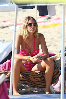 Ilary Blasi "Pink polka Bikini" curve in Sabaudia, Italy